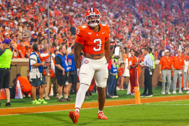 CLEMSON, SOUTH CAROLINA – SEPTEMBER 28: T.J. Parker #3 of the Clemson Tigers reacts before a football game against the Stanford Cardinal at Memorial Stadium on September 28, 2024 in Clemson, South Carolina. (Photo by David Jensen/Getty Images)