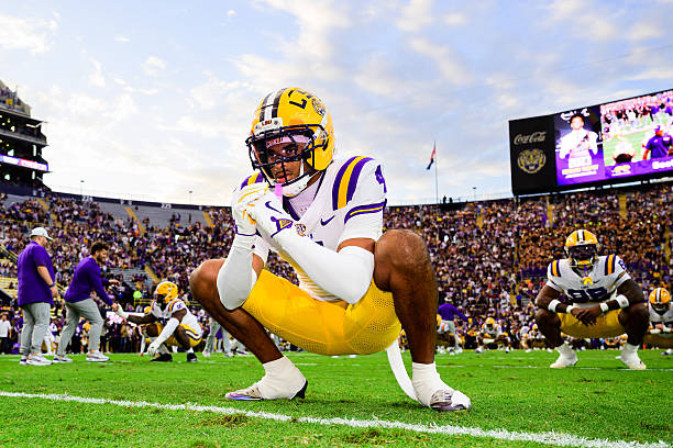 BATON ROUGE, LA – OCTOBER 25: Mansoor Delane #4 of the LSU Tigers before the game against the Texas A&M Aggies at Tiger Stadium on October 25, 2025 in Baton Rouge, Louisiana. (Photo by Gus Stark/LSU/University Images via Getty Images)