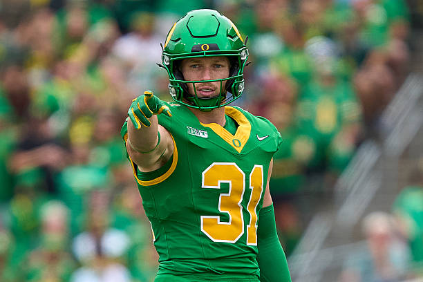 EUGENE, OREGON – SEPTEMBER 6: Dillon Thieneman #31 of the Oregon Ducks looks on in action during a game between the Oklahoma State Cowboys and the Oregon Ducks at Autzen Stadium on September 6, 2025 in Eugene, Oregon. (Photo by Robin Alam/ISI Photos/ISI Photos via Getty Images)